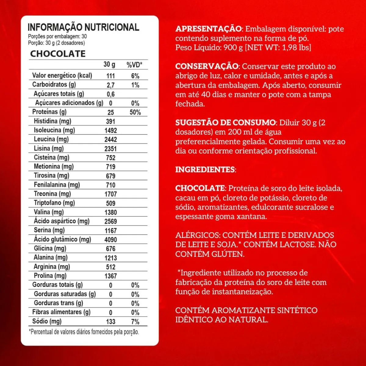 | - | Tipo de Suplemento | Whey Protein Isolado |
