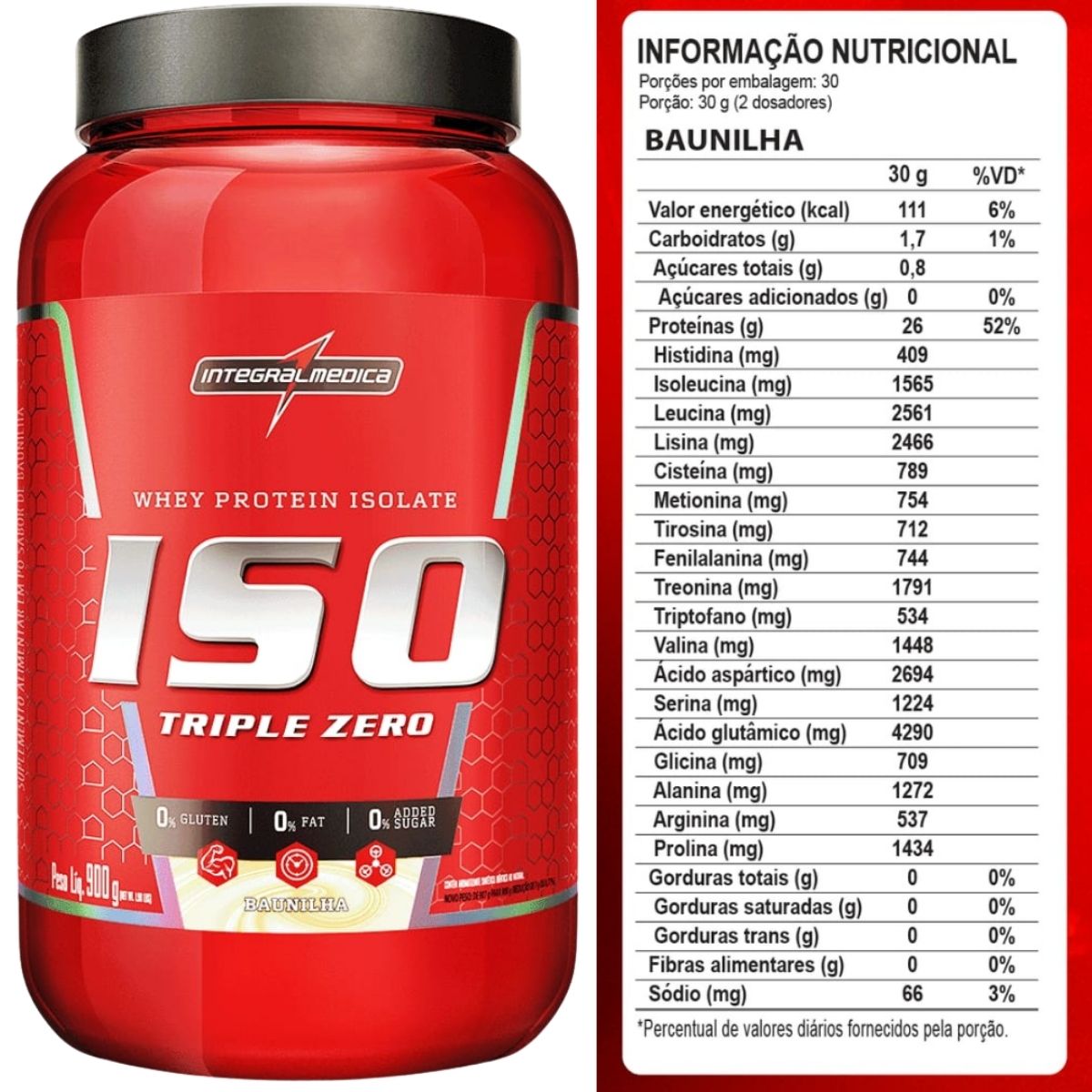 Descubra o poder do Whey Protein Isolado da Integralmedica, uma das marcas mais respeitadas do mercado de suplementação. Cada porção oferece 26g de proteína isolada de altíssima qualidade, contribuindo diretamente para o ganho de massa magra e a recuperação muscular. Rico em BCAA e Aminoácidos Essenciais, é o aliado ideal para atletas que buscam desempenho máximo. Com zero gordura, excelente solubilidade e um sabor inigualável, ele une eficácia e prazer em cada dose. A embalagem rende até 30 porções, garantindo alto custo-benefício. Supere seus limites com Iso Triple Zero!