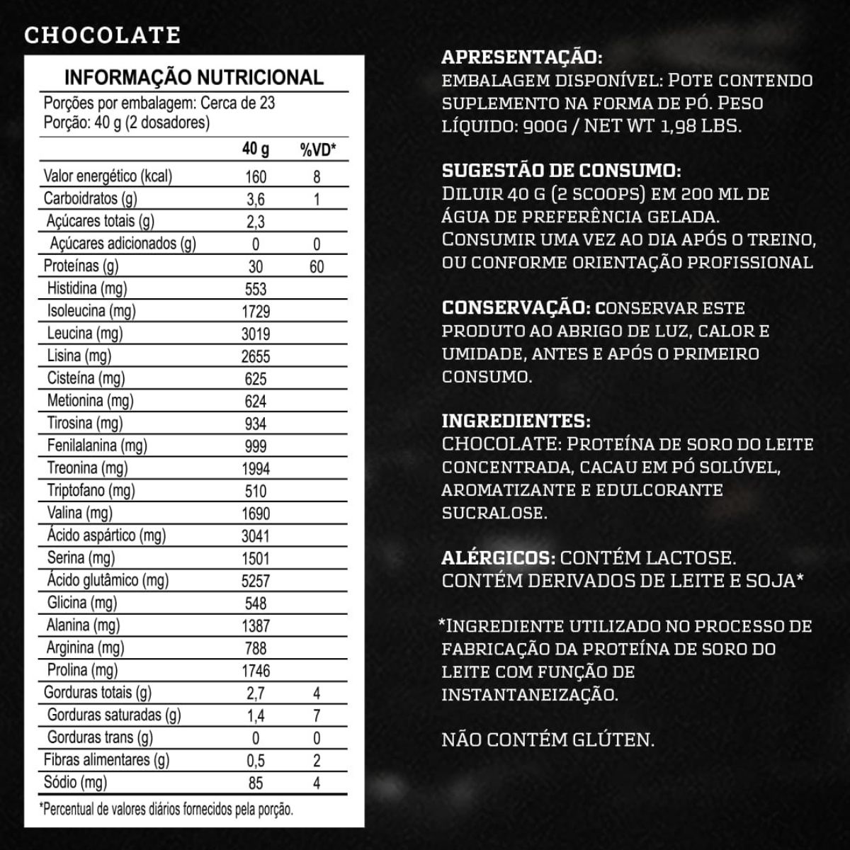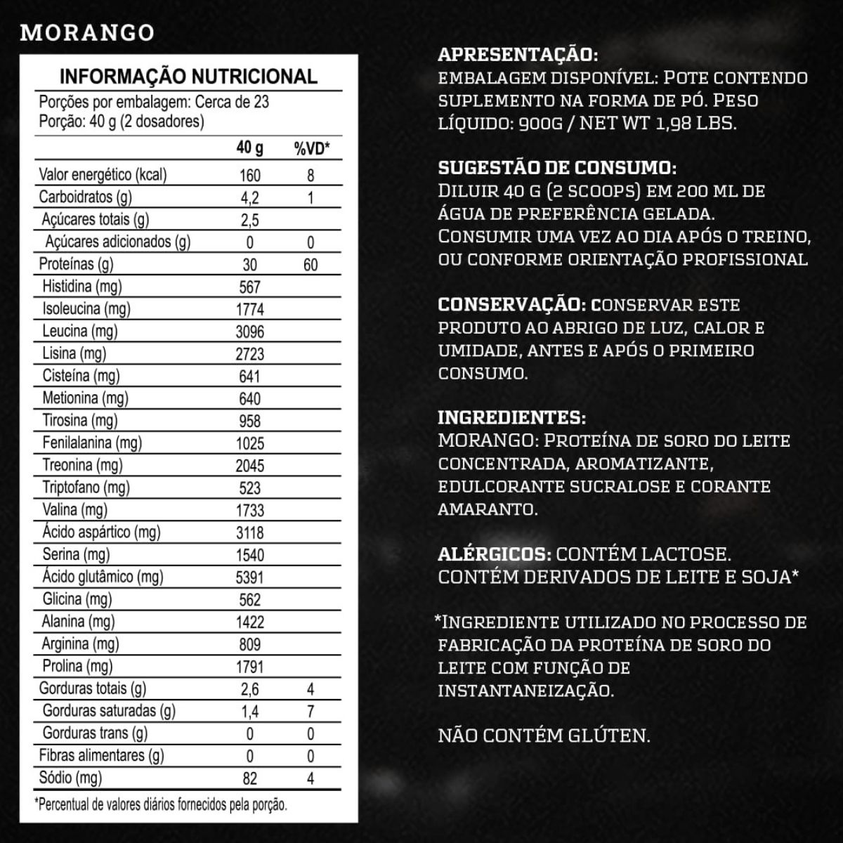 Com um perfil nutricional de destaque e alto valor biológico, este Whey Protein oferece suporte completo para ganho de massa magra, melhora do desempenho físico e recuperação muscular eficaz.