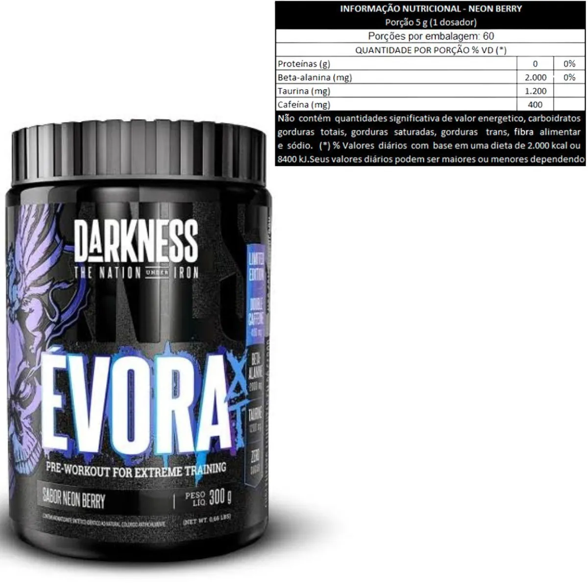Cada scoop de apenas 5g entrega impressionantes 400mg de cafeína anidra, potencializada com Beta Alanina e Taurina, ingredientes poderosos que aumentam o foco, resistência e energia explosiva. Tudo isso sem adição de açúcar ou carboidratos, mantendo sua dieta limpa e seu corpo em performance total. Com uma embalagem de 300g rendendo até 60 porções, o Évora XT oferece o melhor custo-benefício do mercado, trazendo a força de uma marca gigante no mundo da musculação. Supere seus limites com intensidade e eficiência a cada dose!